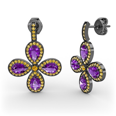 Sitrin ve ametist 925 ayar siyah rodyum kaplama gümüş küpe