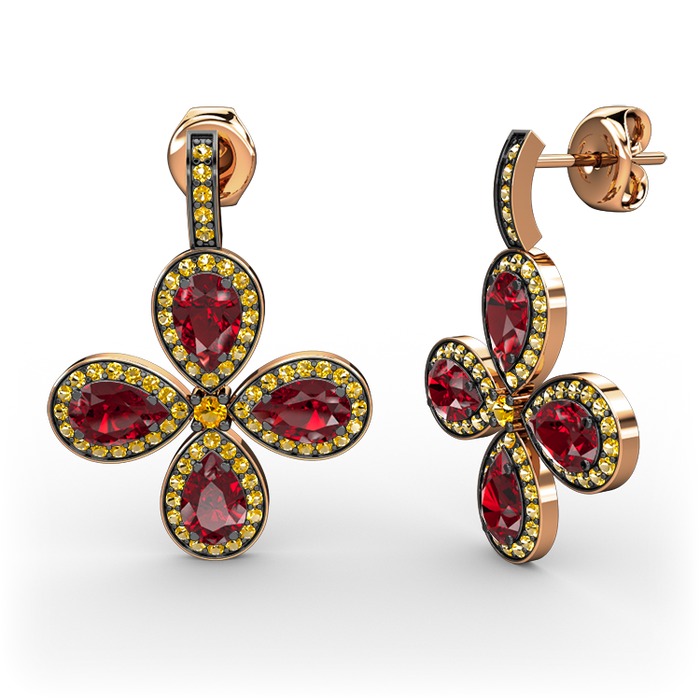 Sitrin ve garnet 8 ayar rose altın küpe