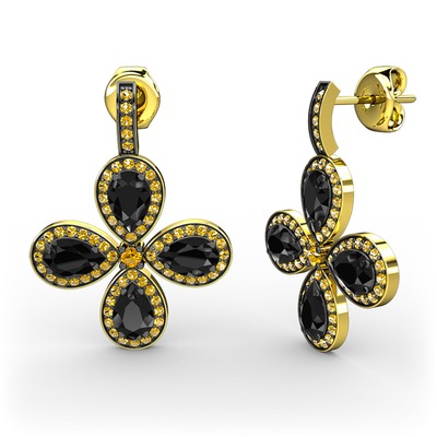 Sitrin ve siyah zirkon 14 ayar altın küpe