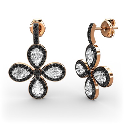 Siyah zirkon ve beyaz zirkon 14 ayar rose altın küpe