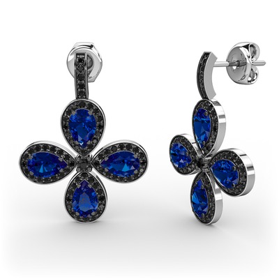 Siyah zirkon ve lab safir 14 ayar beyaz altın küpe