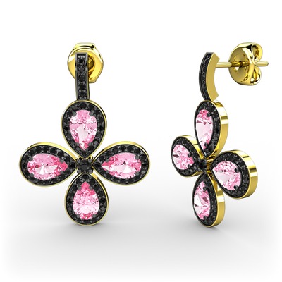 Siyah zirkon ve pembe kuvars 8 ayar altın küpe