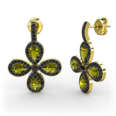 Siyah zirkon ve peridot 18 ayar altın küpe