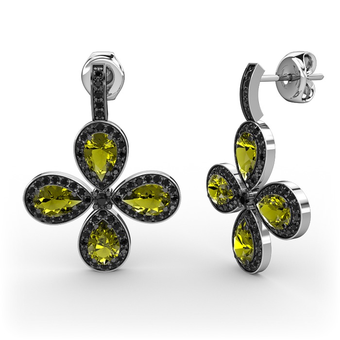 Siyah zirkon ve peridot 925 ayar gümüş küpe