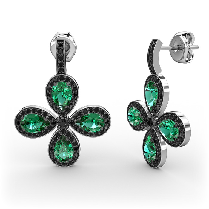 Siyah zirkon ve yeşil kuvars 14 ayar beyaz altın küpe