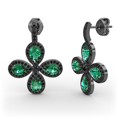 Siyah zirkon ve yeşil kuvars 925 ayar siyah rodyum kaplama gümüş küpe