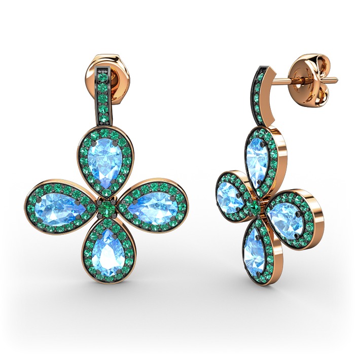 Yeşil kuvars ve akuamarin 8 ayar rose altın küpe