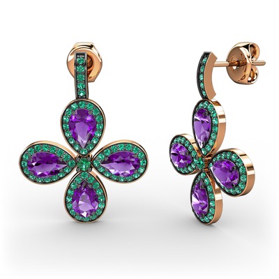 Yeşil kuvars ve ametist 8 ayar rose altın küpe