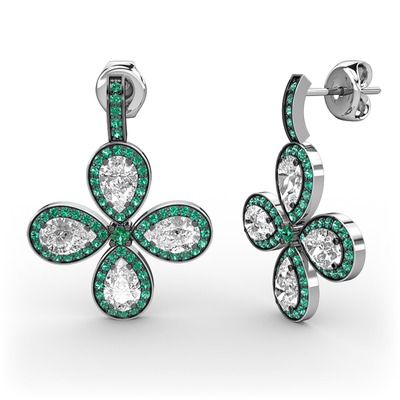 Yeşil kuvars ve beyaz zirkon 14 ayar beyaz altın küpe