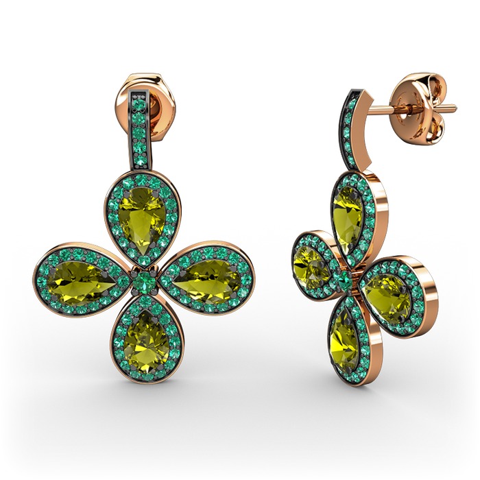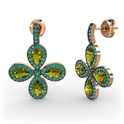Yeşil kuvars ve peridot 925 ayar rose altın kaplama gümüş küpe