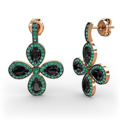 Yeşil kuvars ve siyah zirkon 14 ayar rose altın küpe