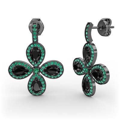 Yeşil kuvars ve siyah zirkon 925 ayar siyah rodyum kaplama gümüş küpe