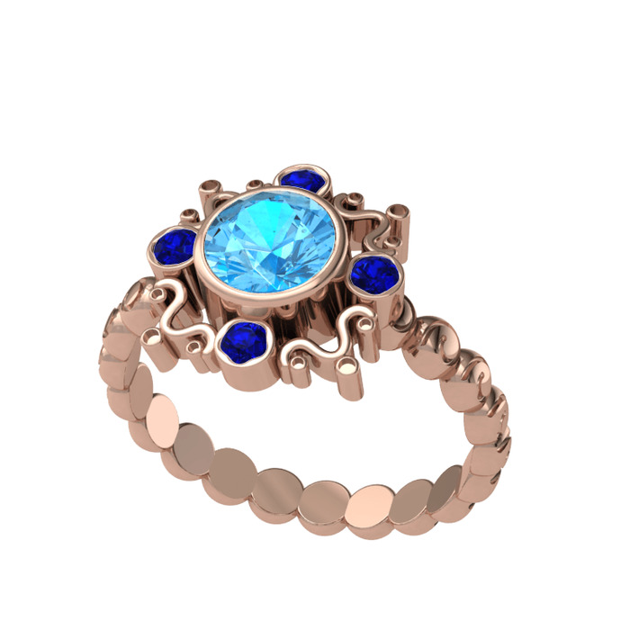 Akuamarin ve lab safir 18 ayar rose altın yüzük