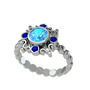 Akuamarin ve lab safir 8 ayar beyaz altın yüzük