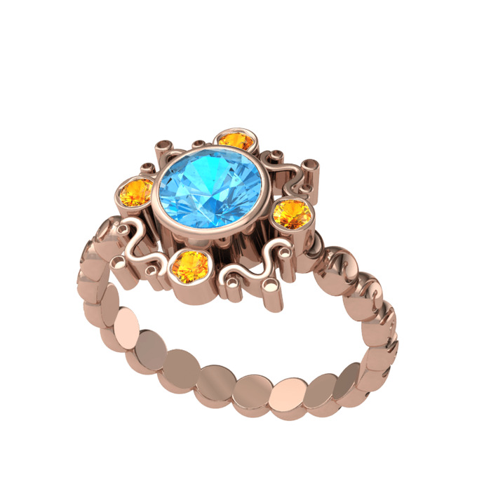 Akuamarin ve sitrin 14 ayar rose altın yüzük