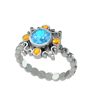 Akuamarin ve sitrin 8 ayar beyaz altın yüzük