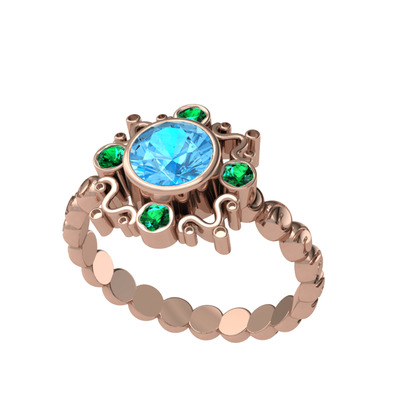 Akuamarin ve yeşil kuvars 18 ayar rose altın yüzük