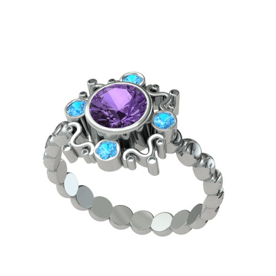 Ametist ve akuamarin 18 ayar beyaz altın yüzük
