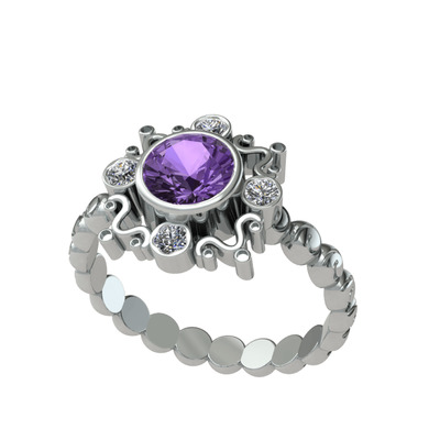 Ametist ve beyaz zirkon 18 ayar beyaz altın yüzük