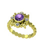 Ametist ve beyaz zirkon 925 ayar altın kaplama gümüş yüzük
