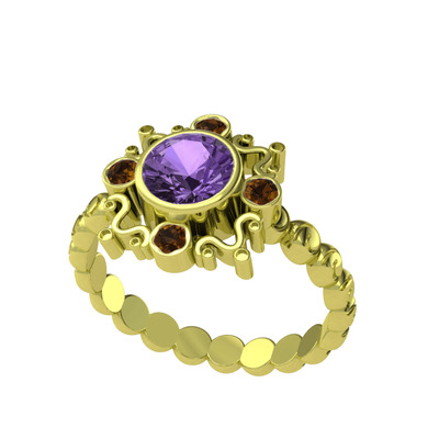 Ametist ve dumanlı kuvars 8 ayar altın yüzük