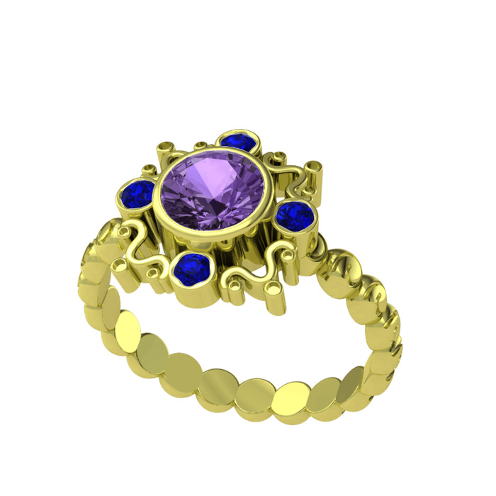 Ametist ve lab safir 14 ayar altın yüzük