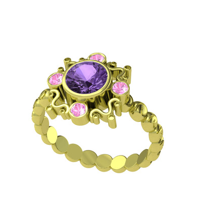 Ametist ve pembe kuvars 14 ayar altın yüzük