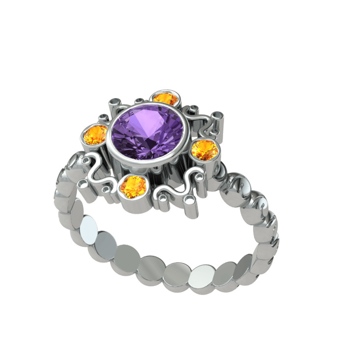 Ametist ve sitrin 8 ayar beyaz altın yüzük