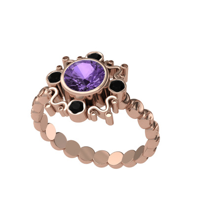 Ametist ve siyah zirkon 925 ayar rose altın kaplama gümüş yüzük