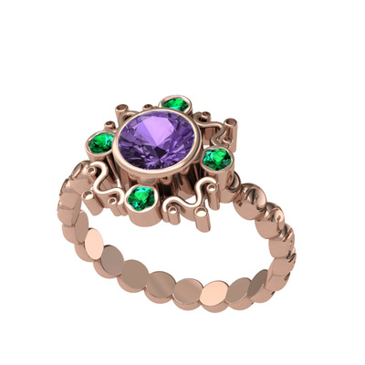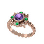 Ametist ve yeşil kuvars 18 ayar rose altın yüzük