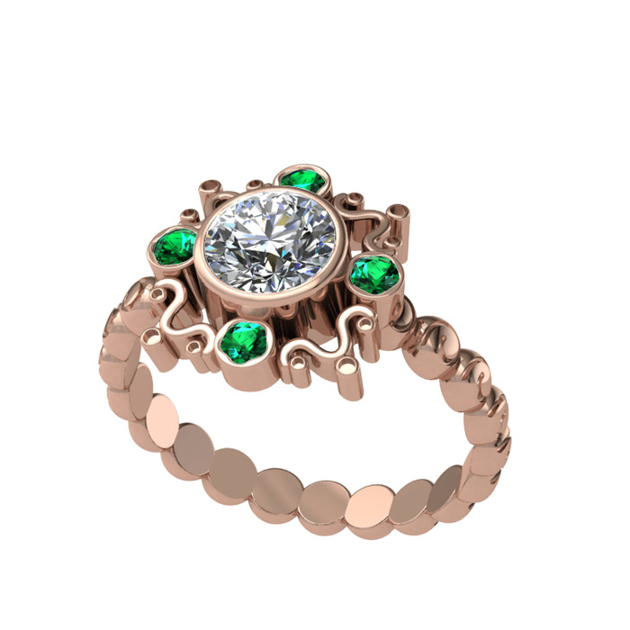Beyaz zirkon ve yeşil kuvars 18 ayar rose altın yüzük