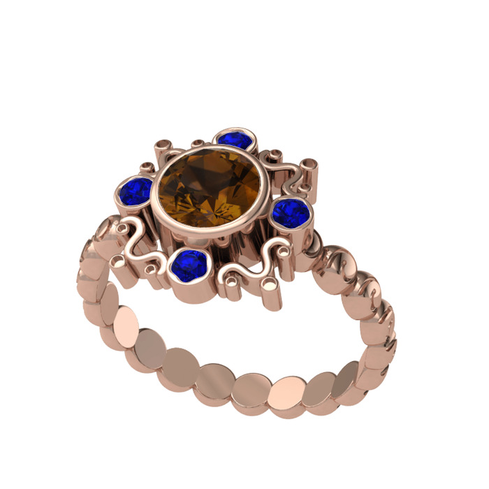 Dumanlı kuvars ve lab safir 8 ayar rose altın yüzük