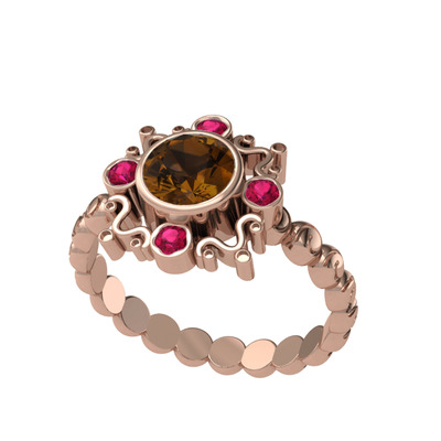 Dumanlı kuvars ve rodolit garnet 14 ayar rose altın yüzük