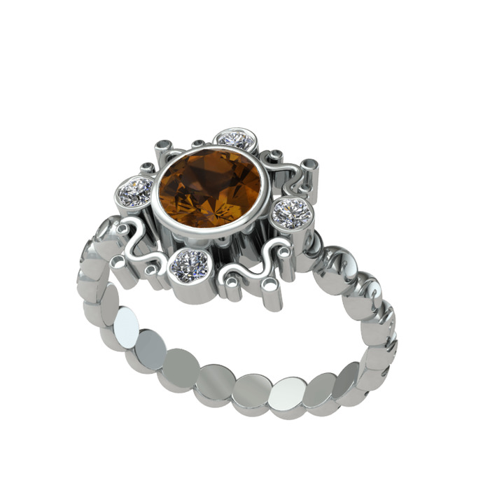 Dumanlı kuvars ve swarovski 18 ayar beyaz altın yüzük