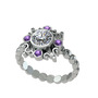 Elmas ve ametist 8 ayar beyaz altın yüzük (0.68 karat)