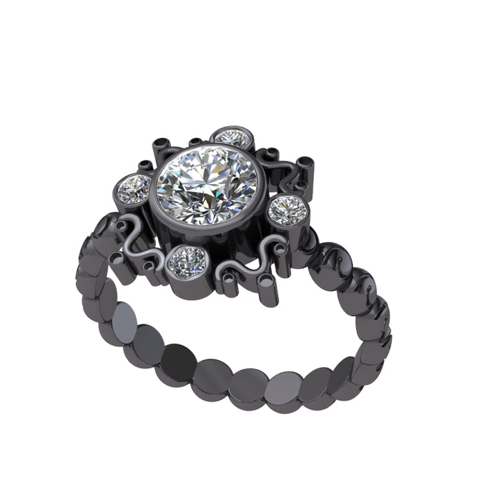Elmas ve beyaz zirkon 925 ayar siyah rodyum kaplama gümüş yüzük (0.68 karat)