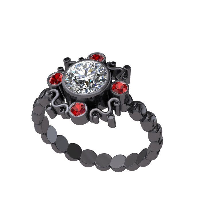 Elmas ve garnet 925 ayar siyah rodyum kaplama gümüş yüzük (0.68 karat)