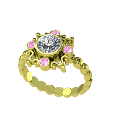 Elmas ve pembe kuvars 14 ayar altın yüzük (0.68 karat)