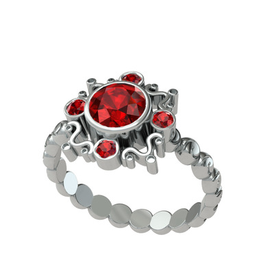 Garnet 18 ayar beyaz altın yüzük