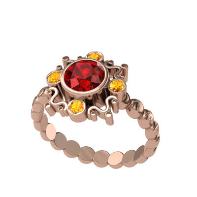 Garnet ve sitrin 18 ayar rose altın yüzük