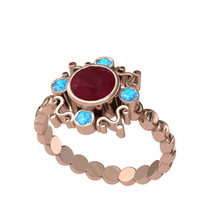 Kök yakut ve akuamarin 8 ayar rose altın yüzük