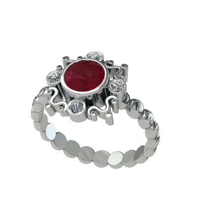 Kök yakut ve beyaz zirkon 14 ayar beyaz altın yüzük
