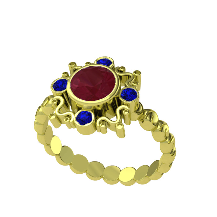 Kök yakut ve lab safir 14 ayar altın yüzük