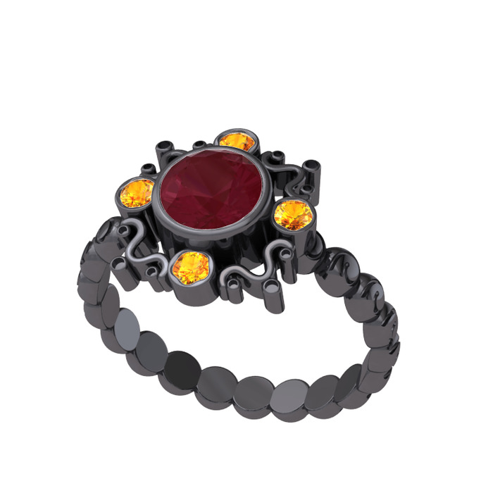 Kök yakut ve sitrin 925 ayar siyah rodyum kaplama gümüş yüzük