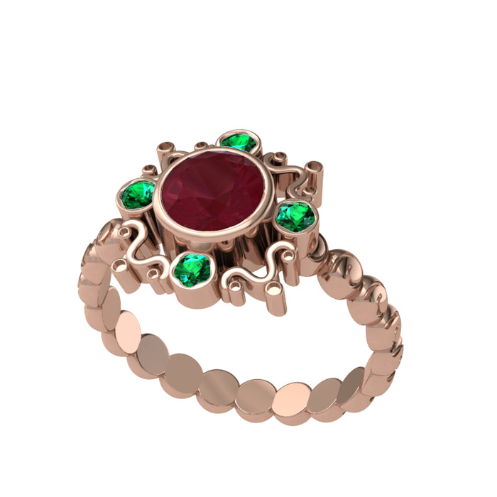 Kök yakut ve yeşil kuvars 14 ayar rose altın yüzük