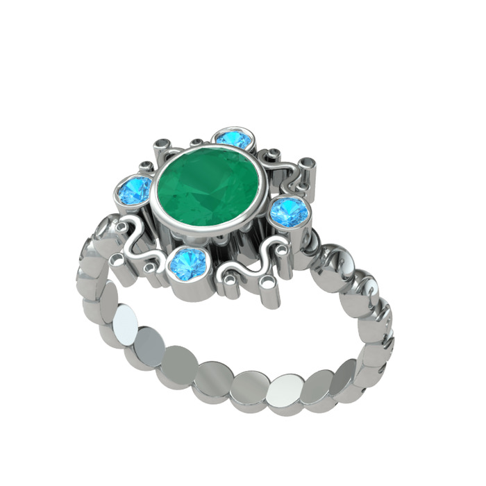 Kök zümrüt ve akuamarin 925 ayar gümüş yüzük
