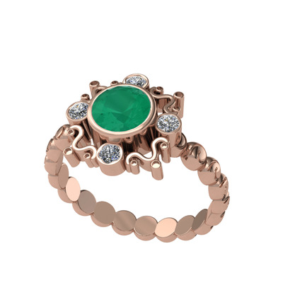 Kök zümrüt ve beyaz zirkon 925 ayar rose altın kaplama gümüş yüzük
