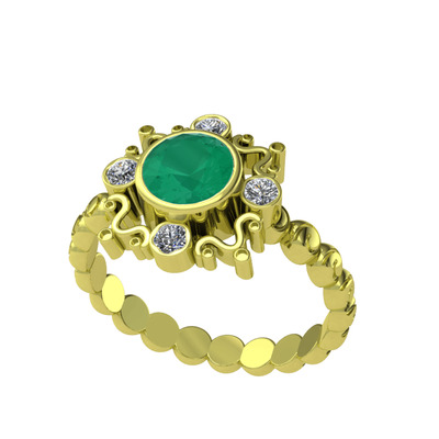 Kök zümrüt ve pırlanta 18 ayar altın yüzük (0.24 karat)
