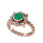 Kök zümrüt ve pırlanta 925 ayar rose altın kaplama gümüş yüzük (0.24 karat)