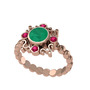Kök zümrüt ve rodolit garnet 18 ayar rose altın yüzük